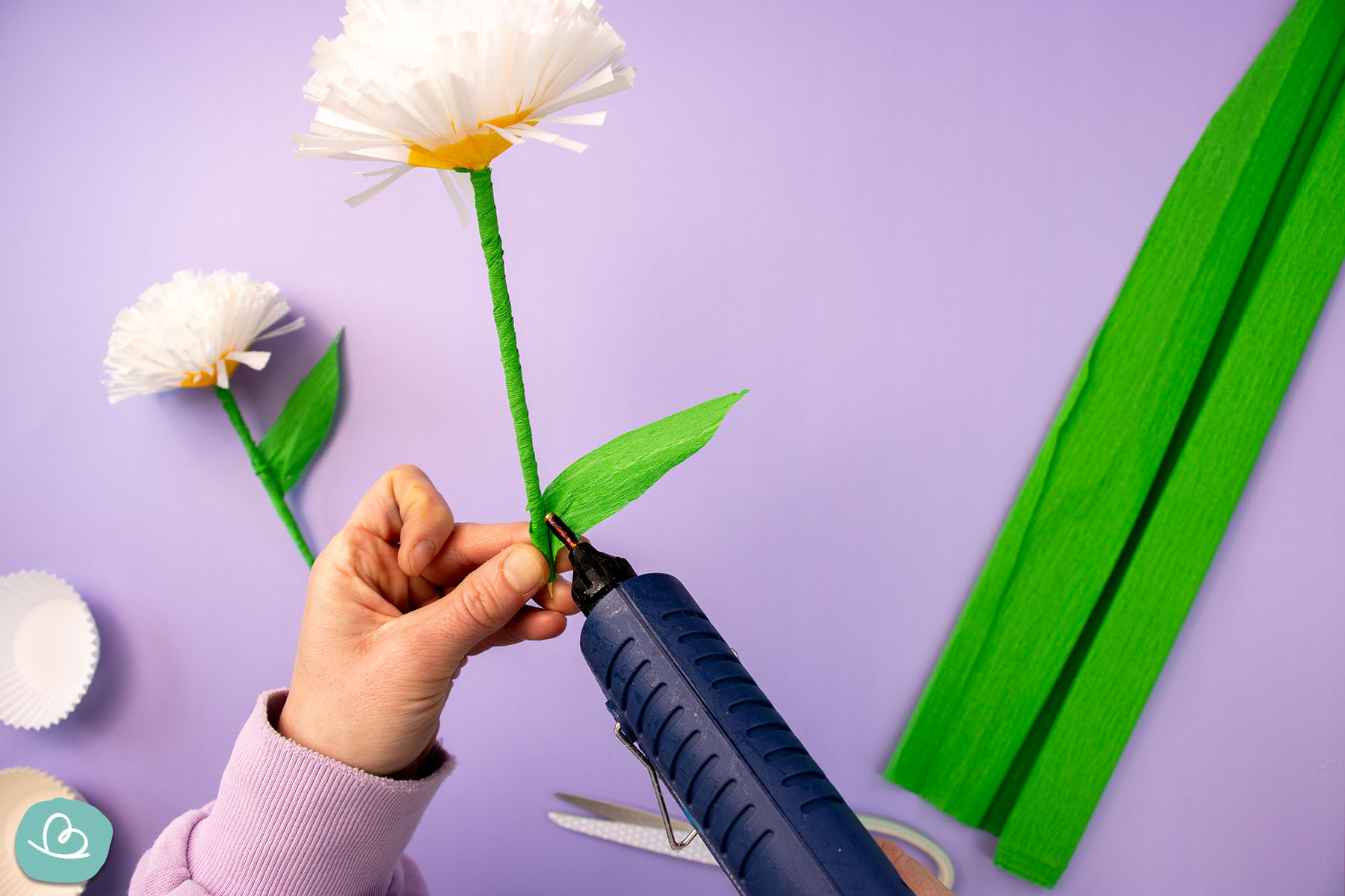 Aus dem überstehenden Rest können noch Blätter gebastelt und aufgeklebt werden.