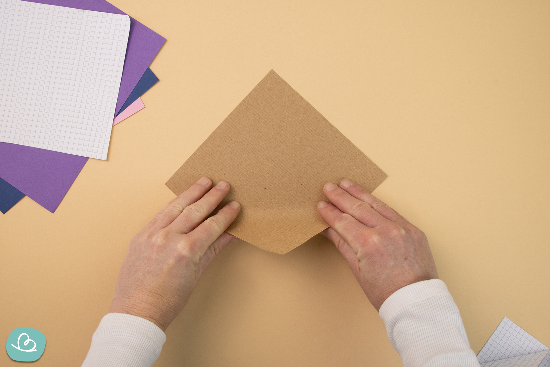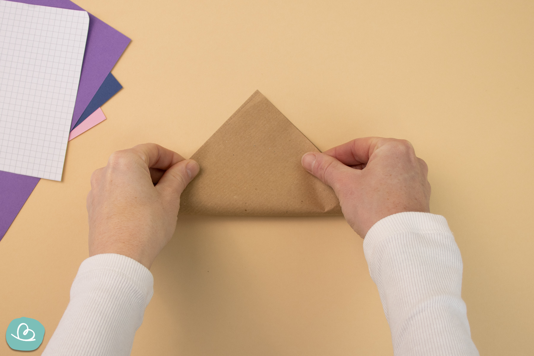 Zuerst faltest du das erste Origami-Papier mittig.